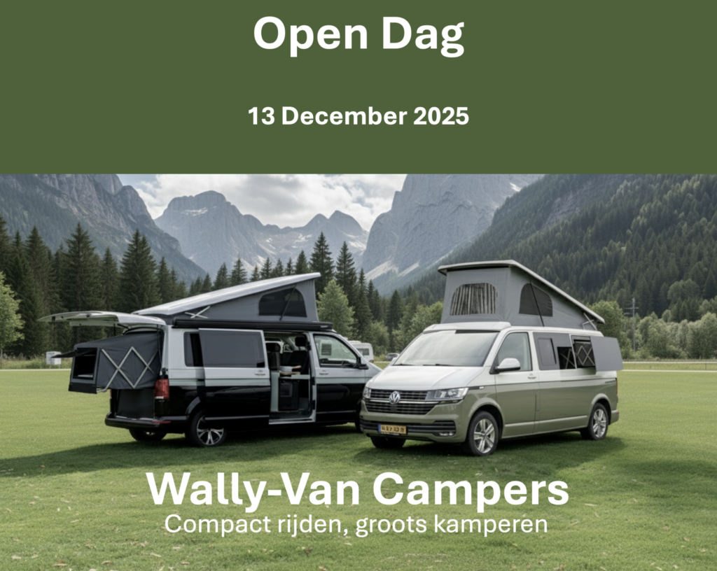 Komende zaterdag 13 december hebben we van 0930h-1300h weer een open dag van Wally-Van Campers. We tonen je daar graag zowel de Wally-Van Classic als de Wally-Van AIR. Deze keer op de leuke camping Buitenleven in Vinkeveen. Adres: Uitweg 33 3645 TA Vinkeveen. Laat je even weten als je komt via info@wally-van.com? Tot dan!